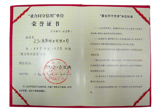 浪莎襪業(yè)股份有限公司被評為“重合同守信用”單位