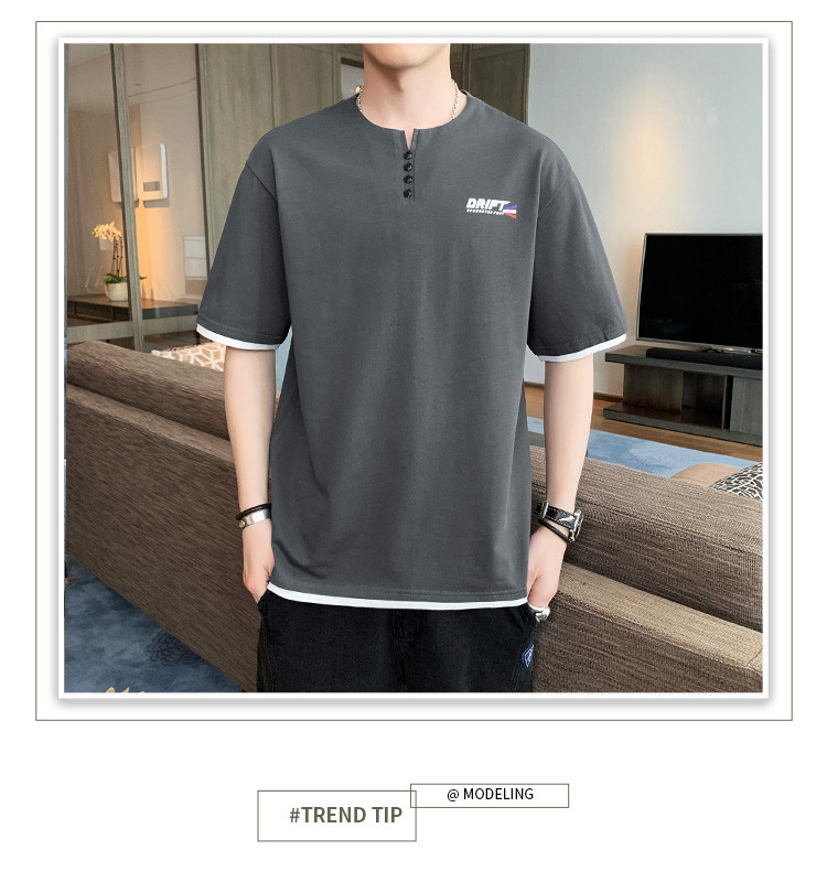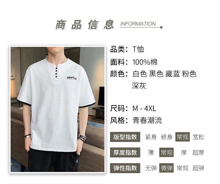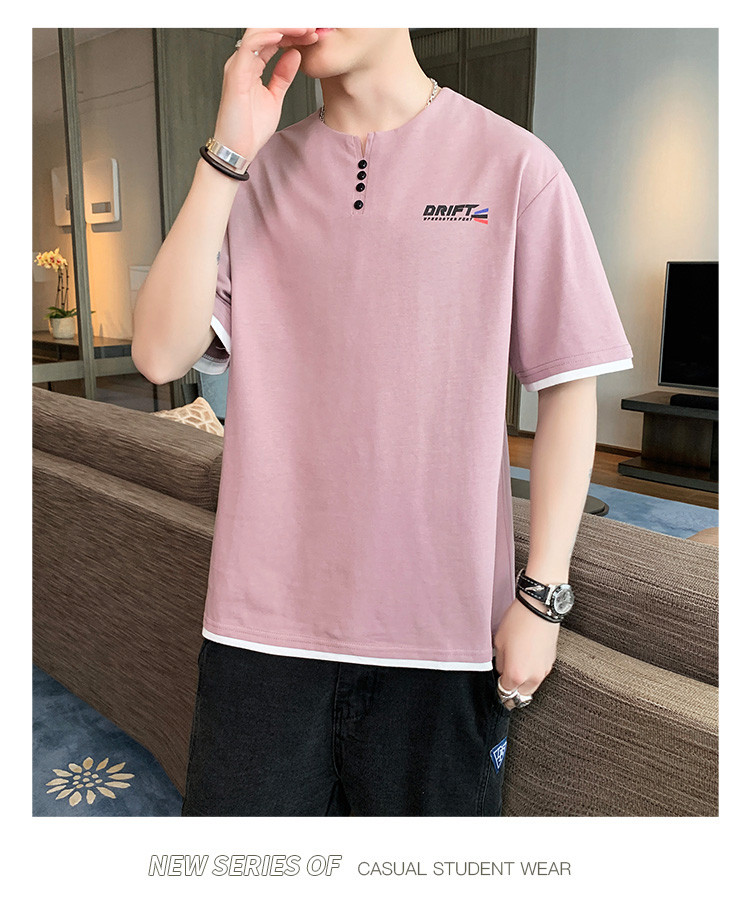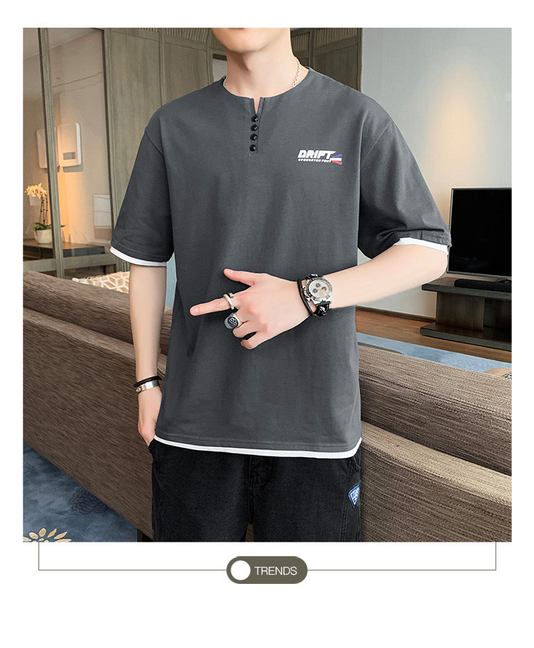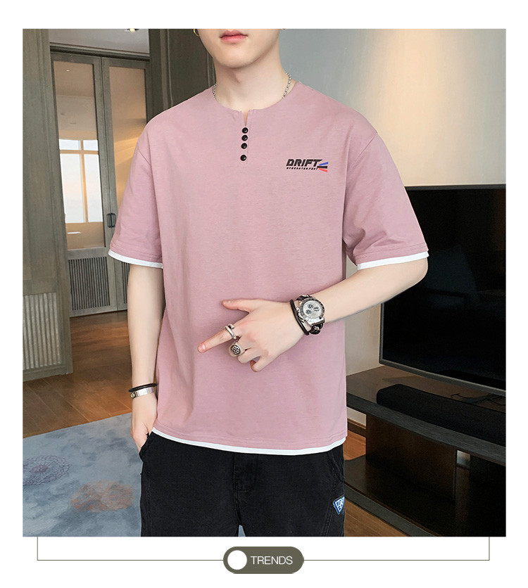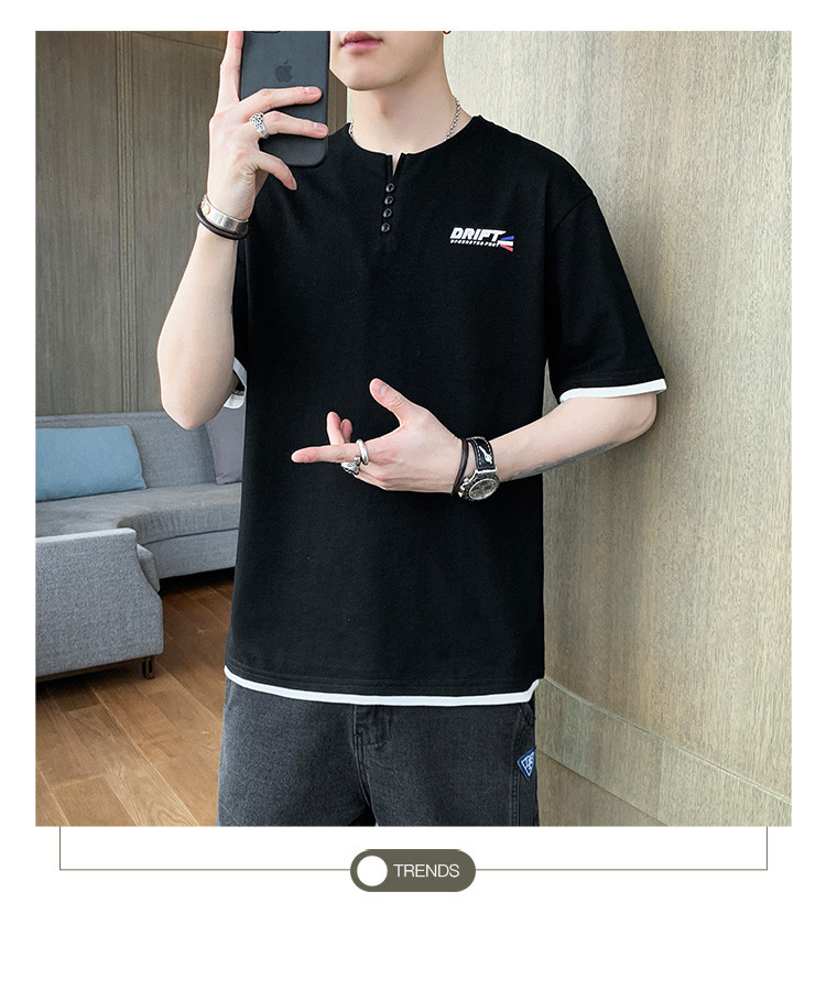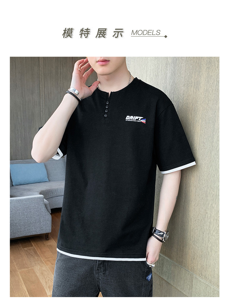 短袖T恤男夏季新款純色寬松百搭假兩件純棉透氣打底衫
