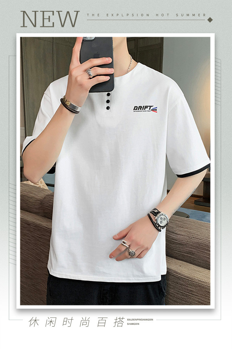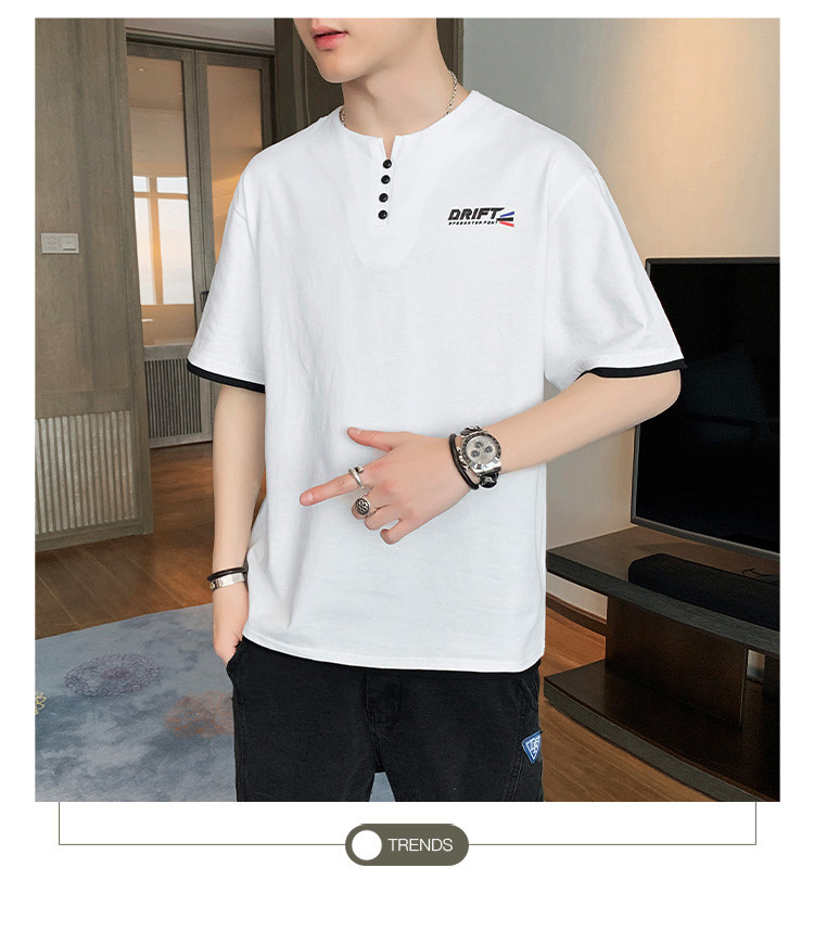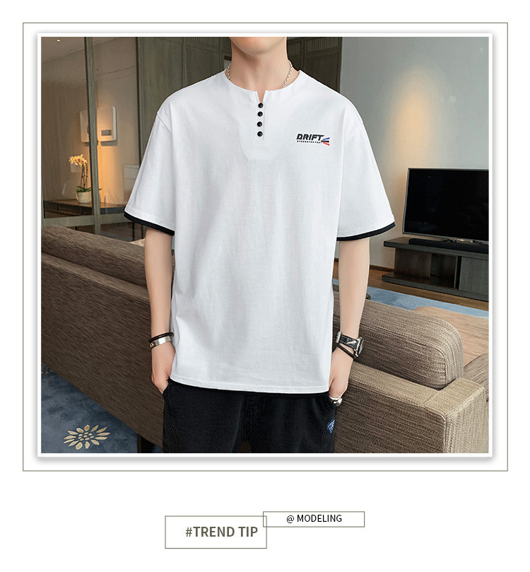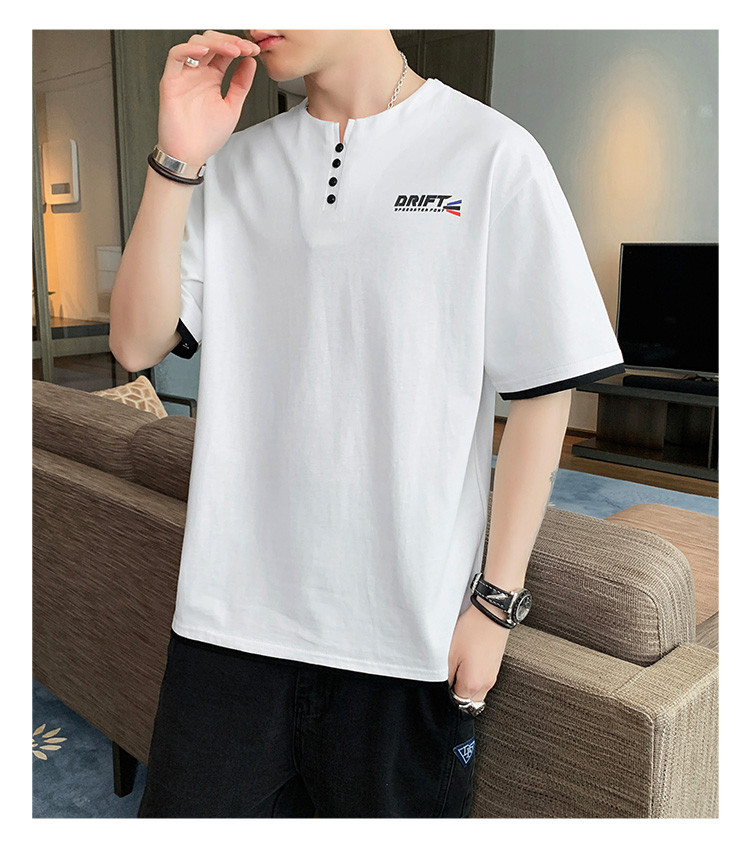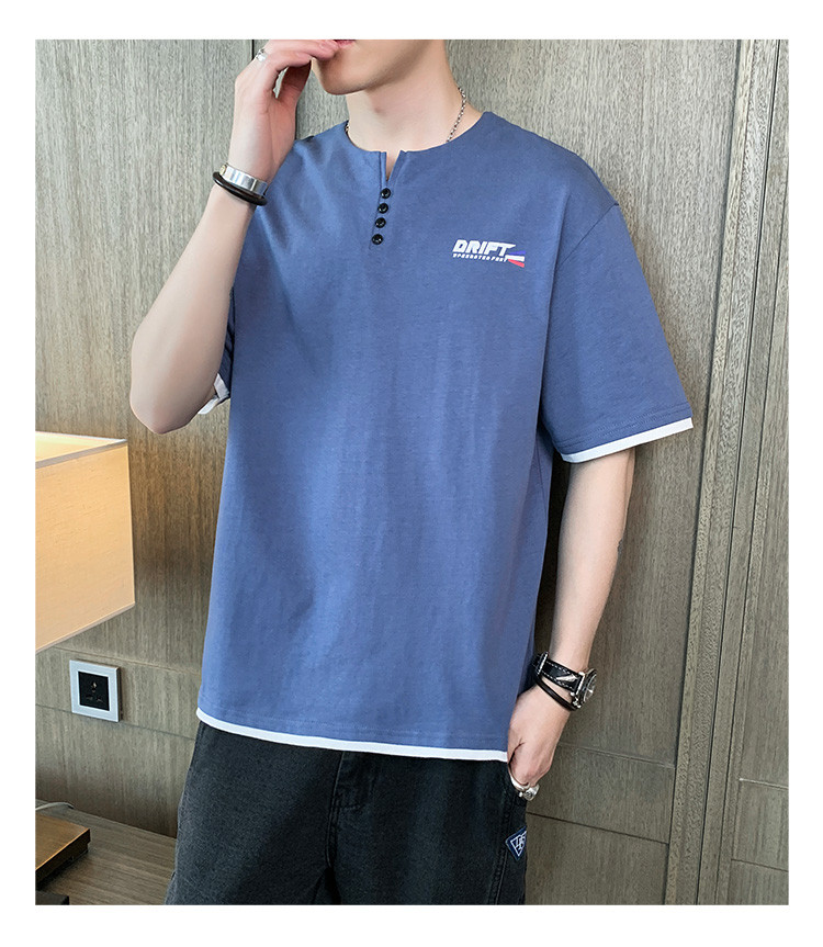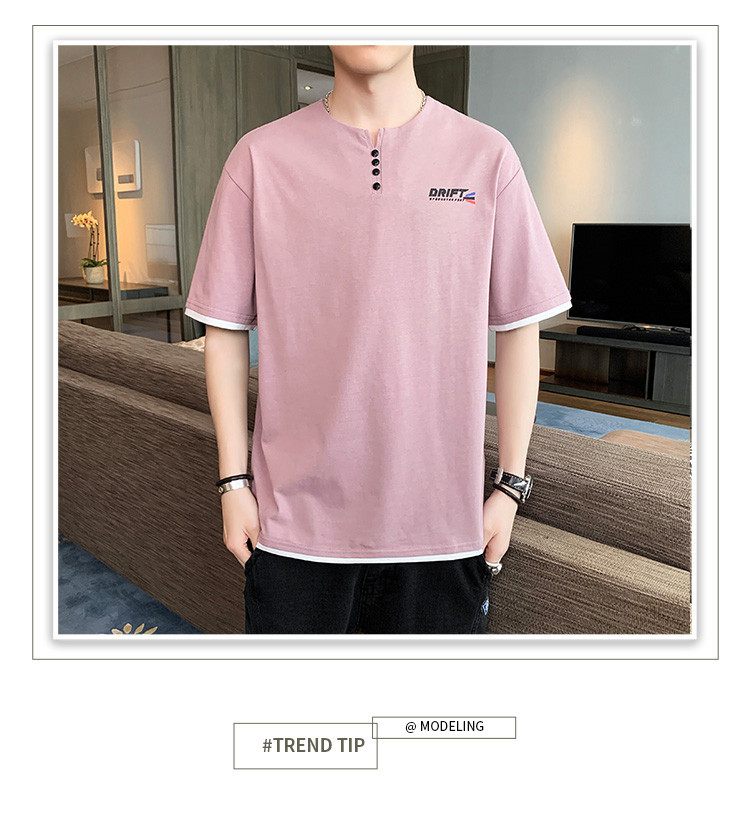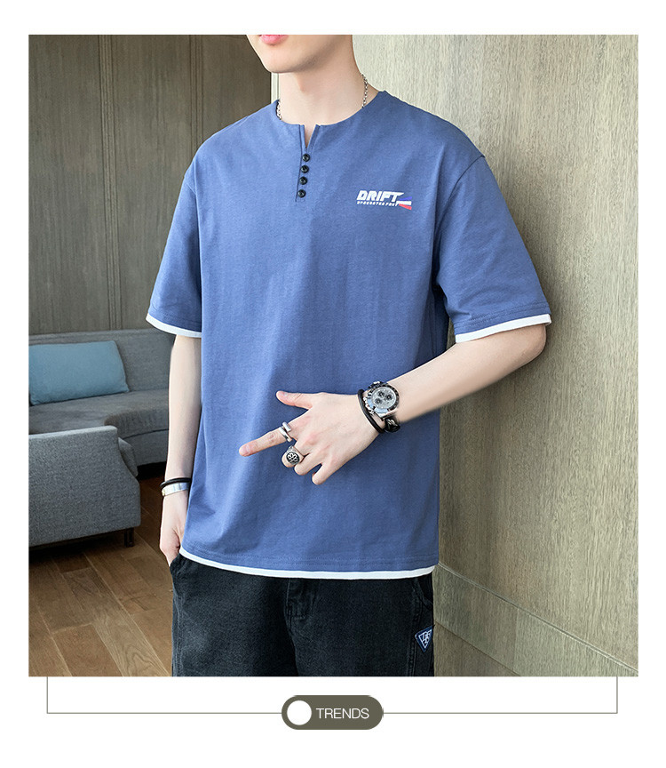 短袖T恤男夏季新款純色寬松百搭假兩件純棉透氣打底衫