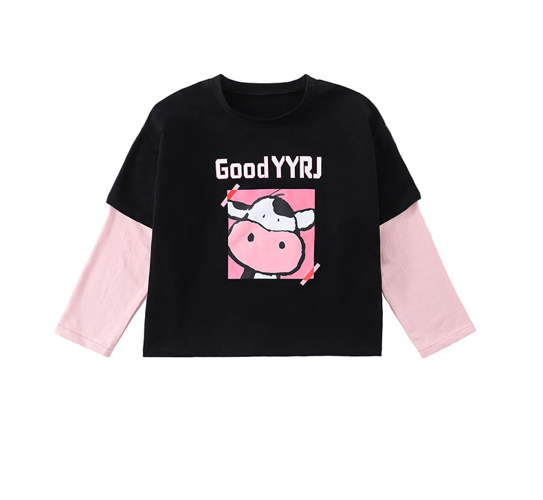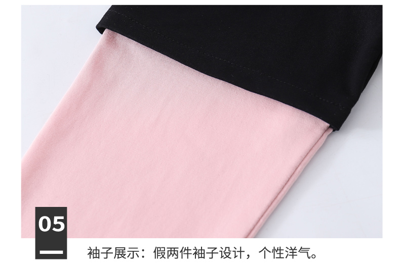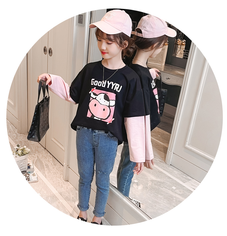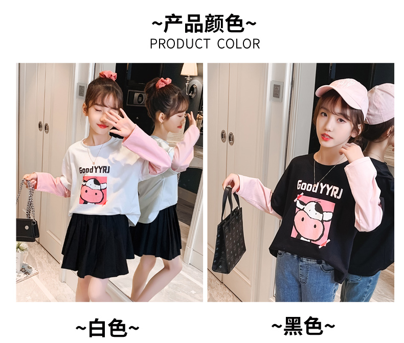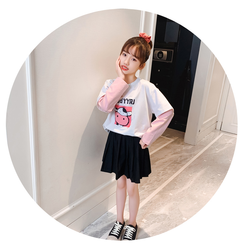 女童春夏2021新款洋氣潮流假兩件白色長袖T恤休閑時髦兒童上衣女