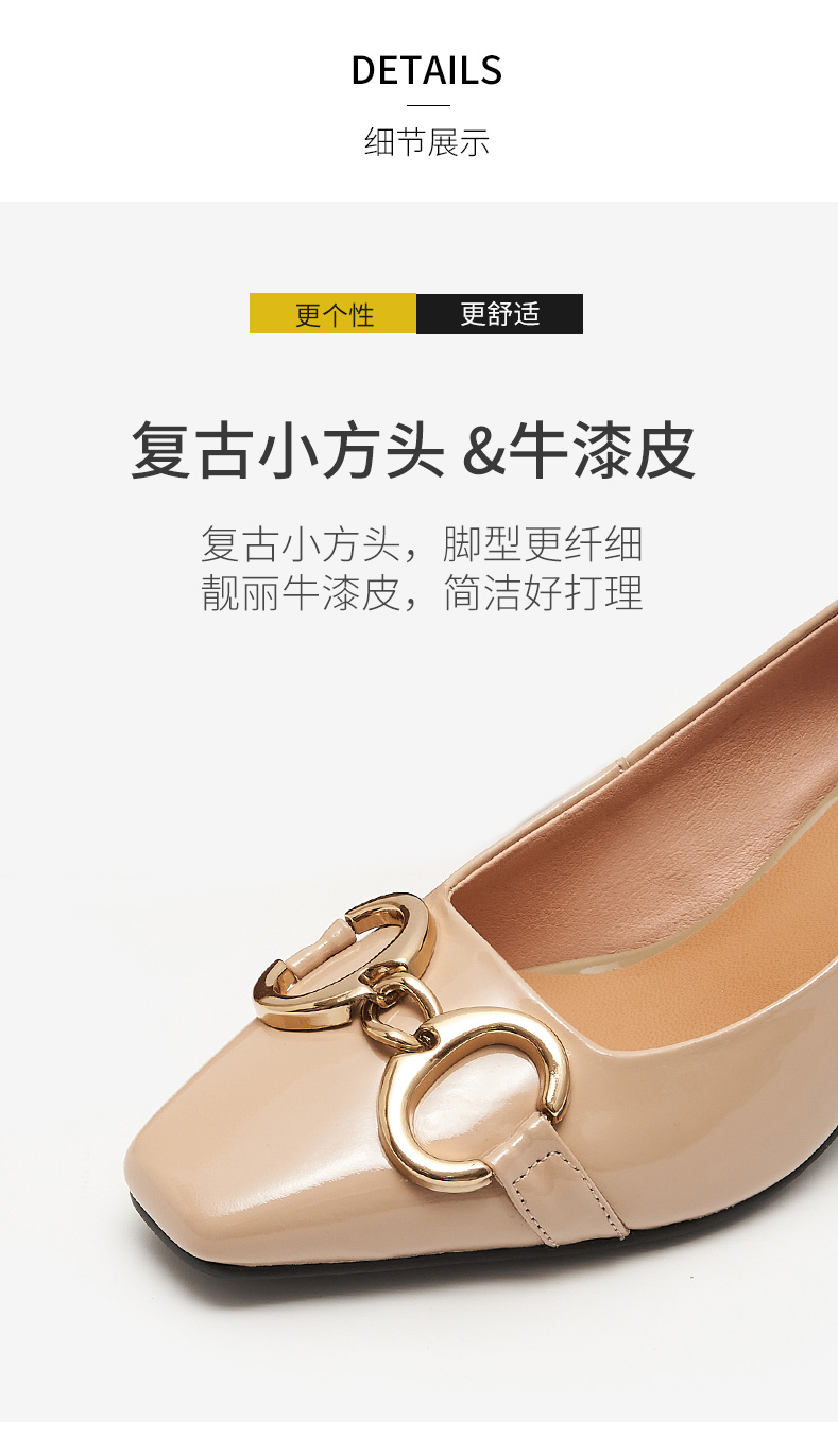 淺口高跟鞋女春夏鞋子2021新款英倫小皮鞋一腳蹬方頭真皮粗跟單鞋
