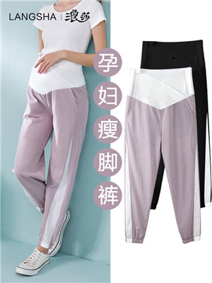 浪莎孕婦打底褲夏季薄款外穿莫代爾春秋季瑜伽九分長(zhǎng)褲子時(shí)尚低腰