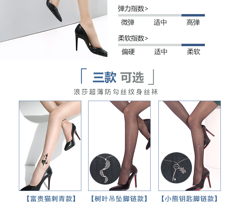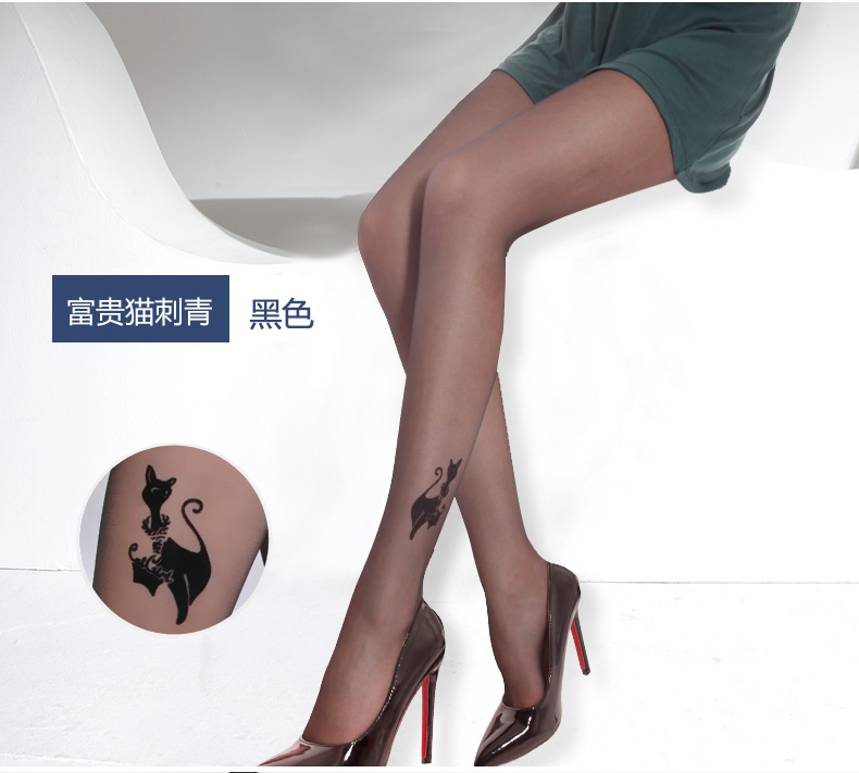 浪莎提花絲襪女 性感時(shí)尚假紋身刺青連褲襪薄款 防勾絲黑絲襪