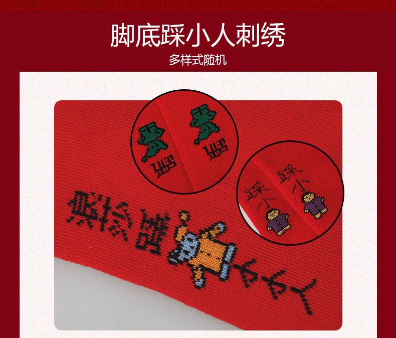浪莎紅襪子女男士本命年純棉踩小人屬牛年結婚情侶全棉大紅色棉襪